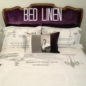 Velvet bed throws and cushions, natural silk and linen curtains and voiles, silk and cotton pillowslips and bedlinen, damask cotton tablecloths and tableware and organic cotton children's ware.